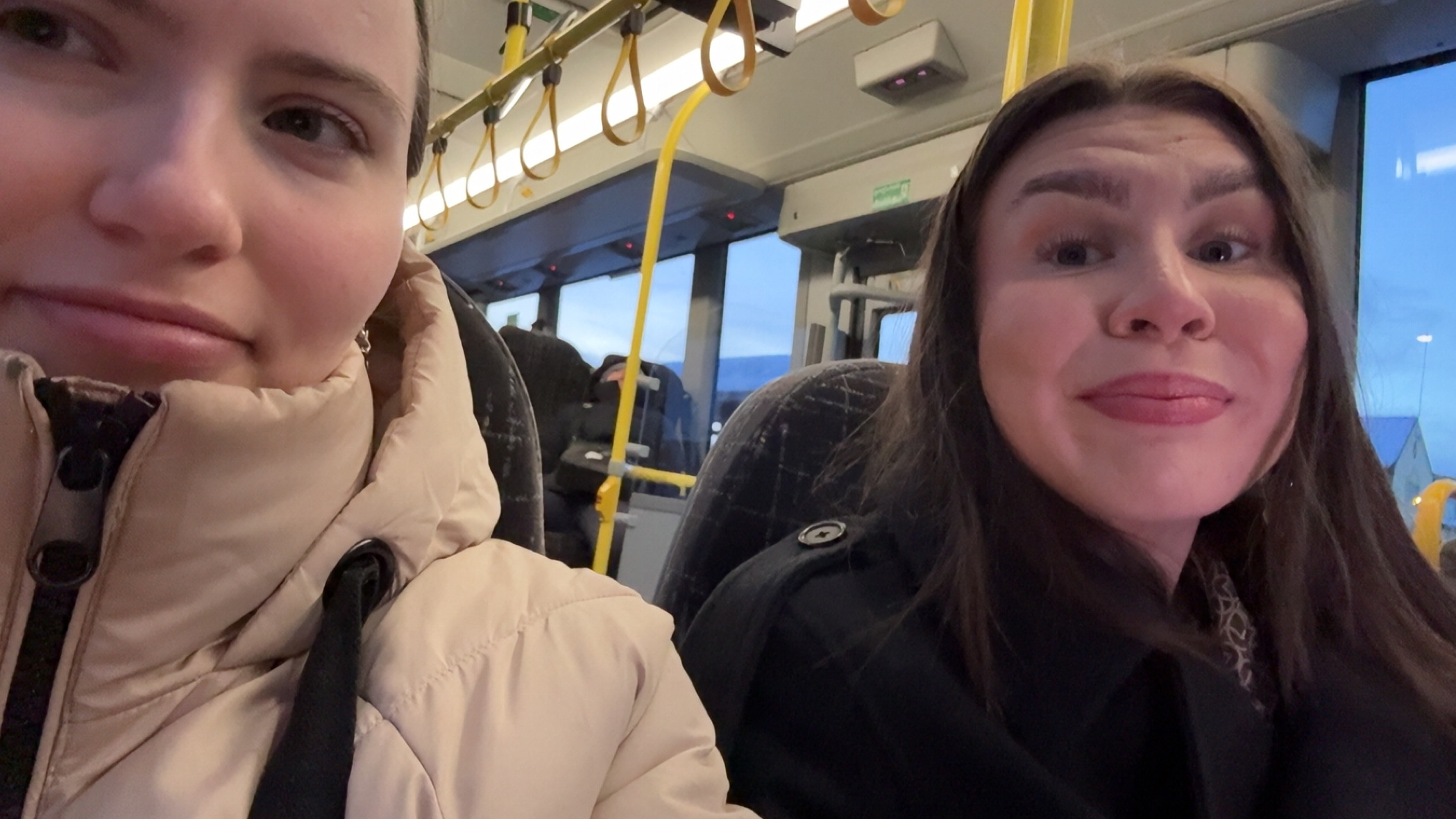 Fra flyplassen i Evenes, som er nærmeste flyplass til Harstad, er det ikke mulig å fly til Kirkenes (der jeg hadde bilen min stående) på ettermiddagen. Vi måtte derfor ta en buss fra Evenes til Tromsø. Siden bussen hadde forsinkelser, endte vi opp med å måtte ta hurtigbåten til Tromsø. Jeg kom litt senere enn planlagt til flyplassen i Tromsø, men heldigvis rakk jeg akkurat flyet og kom meg hjem den kvelden.